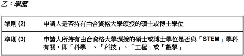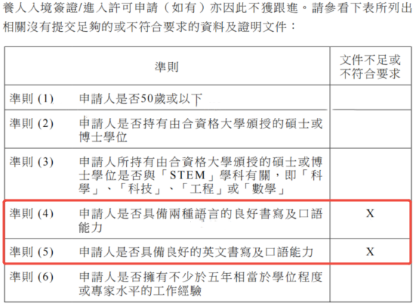 香港优才计划是什么?2025香港优才计划最新攻略+打分表+续签避坑指南。 在2024年11月,香港优才计划(优秀人才入境计划)政策迎来重大改革,从“满分245达到80分”转变为“满足12项评核标准中的6项”是否的精准筛选模式。 如果你不太清楚新版香港优才计划的申请条件,不妨跟着CICI了解一下~ 香港优才的最新申请条件 为了申请香港优才计划,首先需要准确评估自己的基本资格是否符合要求,只有满足这些条件才能进行申请。 申请的资格要求主要分为两部分:基本资格和计分制度。 1、基 本 资 格 以下四项是申请香港优才计划的必备条件,缺一不可: 1️⃣申请人必须年满18岁。 2️⃣申请人需有能力独立负担自己及家人至少一年的生活和住宿费用。通常,个人申请需要提供不少于12万港币的资产证明,而家庭申请则需要至少36万港币的资产证明。 3️⃣不得有刑事犯罪记录或不良入境记录。 4️⃣必须持有由认可大学或高等教育机构颁发的学士学位或以上学历。 然而,在某些特殊情况下,如果申请人具备良好的技术资历、专业能力或取得显著成就,也有可能通过审核。 一旦你符合上述基本资格,就可以根据自己的实际情况,从“成就计分制”和“综合计分制”中选择一种来申请香港优才计划。 2、评分机制 01成就评分机制 此机制针对那些在某一特定领域或行业内做出卓越贡献并获得重要荣誉的人士,例如奥运会奖牌得主、诺贝尔奖获得者或国家/国际级别奖项的获奖者。如果申请者不满足这些条件,申请将被立即拒绝。 02综合评分机制 该机制通过对年龄、学历、语言能力、工作经验、年收入和业务所有权六个方面进行全面评估,具体分为12项评核标准。申请者只需在这12项中符合至少6项即可提交申请。 12项符合6项即可申请香港优才计划,香港身份红利期剩不到2个月!识别二维码看看自己是否符合优才?30s出结果,会有专业的顾问老师跟您一对一解答~ 1、年龄 ①年龄分数的计算以申请人递交申请时的实际年龄为准。 2、学历 ②申请人若拥有“合资格大学”颁发的硕士或博士学位,便符合准则 2。 ③申请人若持有“合资格大学”学位,且所学专业为 STEM 学科(即科学、科技、工程、数学相关学科),则同时符合准则 2 和准则 3。 如果您想了解合资格大学和STEM学科是哪些?可以点击以下小程序免费获取。 3、语言 在最新的优才计划中,语言能力方面有两种加分情况: ③如果申请人来自中国大陆,母语为中文并且具备英语能力,他们可以同时满足准则4和准则5。 ④如果申请人掌握中文以及英语以外的另一种语言(例如日语),则只满足准则4。 申请人英语能力的评估标准包括:雅思考试成绩达到7分;托福考试成绩达到94分;大学英语六级考试成绩达到520分; 4、工作经验 申请人符合以下任意一项工作经验要求,即可满足对应条件: ⑥申请人在获得学位证之后,拥有不少于五年相当于学位程度或专家水平的工作经历,可符合准则6。 ⑦申请人拥有不少于三年相当于学位程度或专家水平的工作经验,且该工作是在跨国公司或知名企业中获得,可符合准则7。 其中,知名企业可参考上市公司,或位列《福布斯》全球企业2000强、《财富》世界500强和胡润中国500强的企业。 ⑧申请人拥有不少于三年相当于学位程度或专家水平的工作经验,且该工作是在特定领域/行业开展,这些特定领域/行业包括“创新及科技”“金融”以及“国际贸易”(涵盖跨境海运及空运,以及供应链管理),可符合准则8。 ⑨申请人拥有不少于三年相当于学位程度或专家水平的工作经验,且该工作是在特定领域/行业开展,这些特定领域/行业包括“创新及科技”“金融”以及“国际贸易”(涵盖跨境海运及空运,以及供应链管理),可符合准则9。 “国际工作经验”是指申请人在原居国家/地区以外取得的、相当于学位程度或专家水平的工作经验。 5、全年收入 ⑩若申请人在过去12个月的税前收入达到100万港币(或等值外币)且收入已完税,则符合准则10。 6、业务所有权 ⑪申请人申请时持有非上市公司超过50%的股份,且该公司在过去12个月实现了500万港币以上的盈利,可符合准则11。 ⑫申请人现时有一家上市公司,可符合准备12。 【申请人持有上市公司超过10%的股份,且该公司在过去 12 个月盈利达 500 万港币以上,可同时符合准则11和准则12。】 12项符合6项即可申请香港优才计划,香港身份红利期剩不到2个月!识别二维码看看自己是否符合优才?30s出结果,会有专业的顾问老师跟您一对一解答~ 香港优才计划申请 假设被拒 在香港优才计划实施新政改革后,入境处开始明确告知申请人拒绝的原因,这为未来的申请人提供了宝贵的参考。目前,优才计划的拒绝信主要分为两种形式。 1、文件不足或不符合要求 对于2024年11月后提交的新版香港优才计划申请,如果申请被拒,拒绝信将明确指出申请人自选的12项标准中哪些未获认可。入境处的审核人员将在未被认可的标准旁标记【X】。 比如图中“准则4”和“准则5”就被标记【X】,出现这种情况,原因可能是申请材料存在缺失,或者材料不符合申请要求。 若申请人收到此类拒批函,建议寻求专业人士的帮助,重新评估自身条件,确认是否符合新版优才计划的申请资格。 优才可以重新申请,优才申请者就可从【X】重新整理资料进行二次申请。 2、符合要求但被拒 即便申请人达到了香港