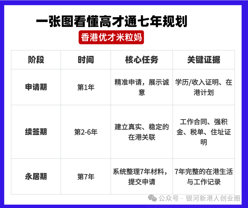 优势: 自主性强,更能体现对香港经济的实质贡献,是续签的有力证明。关键操作:(真实运营+实质贡献)是关键第三阶段:申请永居(第7年)—— 水到渠成
