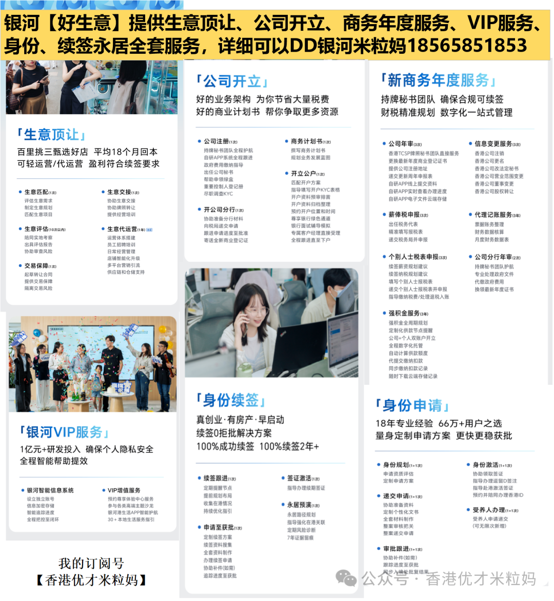 香港身份办理、创业和续签都找银河集团,从香港身份办理、选项目、收购店铺、租赁办公室、到后期招人、商务服务、公司代理运营管理,续签和永居手续办理, 银河集团全都帮您搞定。选银河不仅是选一个服务机构,更是选一个懂香港、懂创业、懂续签的长期伙伴!银河【好生意·真经营】=身份到手+创业成功+顺利续签转永居。想要了解银河集团【好生意·真经营】项目可以加银河米粒妈微信详细沟通(18565851853&17675416895) 2023年,香港高才通计划开启,一场人才争夺战轰动全国。巅峰时期,单日申请量破千,咨询电话被打爆,中介机构连夜排队。 而如今,申请数据回落,部分获批者选择不激活签证或短暂停留后离开。市场开始出现质疑:“香港吸引力下降了吗?” 事实上,若将高才通的“退潮”简单归因于香港魅力不再,无异于刻舟求剑。 真正的答案藏在一组数据中:据入境处统计,高才通获批者中,约30%未在半年内激活签证,另有约20%在获批一年后未提交续签申请。 “退潮”的本质,是理想化预期与现实环境的碰撞结果。 香港身份需要先评估再申请! 如果你还没有拿到香港身份,不妨花10秒测评自己到底适合哪种方式落户!点击链接测评,立刻有答案↓↓↓ 也可以DD米粒妈一对一精准测评和答疑18565851853 曾几何时,香港“高才通”计划如同一张备受追捧的黄金门票,承载着无数人快速实现职业跨越、身份升级的理想。然而,一波申请热潮过后,“退潮”之象开始显现——有人选择离开,有人仍在观望。这一现象并非计划的失败,而是一场必然的价值回归。当泡沫被挤出,我们才能更清晰地看清真相:高才通的本质是什么?2025年的它,又为谁而准备? 一、预期失衡:三个理想与现实的落差 1. 职业机会:国际化平台≠高薪捷径 许多申请者期待借此跻身国际名企,却发现香港职场竞争更透明、更残酷。 现实:香港雇主更看重国际经验与语言能力,内地职场逻辑需重新适应。 数据:金融、科技行业的中高层岗位,通常需流利英语+粤语+全球从业背景。 2. 生活成本:高品质生活≠低成本生存 理想:国际化都市,薪资水平全球领先。 现实:一套普通两居室月租可达2.5万港元,子女国际教育年均20万港元起。 结果:部分家庭因成本压力选择“留港工作,家人居内地”的双城模式。 、 3. 身份价值:跳板≠终点 理想:通过香港身份获取国际流动性、税务优化、子女教育优势。 现实:身份价值需通过7年持续贡献兑现,短期内无法直接转化为收益。 二、政策优化:从“广纳”到“精选”的必然转型 香港对人才的筛选标准正在发生变化,这一转型反映在2025年政策的细微调整中: 1. 续签审核趋严 初期“宽进”后,2025年续签阶段更看重在港实质性贡献:如稳定就业、创业落地、子女在港就读等。 单纯“挂靠”身份难以通过续签审查。 2. 人才清单动态调整 人才清单从原始13项增至20项,重点增加新能源、Web3.0、半导体等领域。 政策导向清晰:吸引香港急需的“硬核”人才,而非单纯追求数量。 3. 申请材料要求细化 需提供更详细的在港生活计划、就业安排证明。 目的:筛选真正有意向在港长期发展的申请人。 三、理性回归:谁更适合2025年的香港? 经历泡沫挤压后,香港高才通正回归其本质:一个为特定人群设计的精准工具。 以下三类人仍能从中获得高价值: 金融与专业服务从业者:香港国际金融中心地位未变,相关人才需求稳定。 目标明确的创业者:利用香港低税率和自由市场,拓展海外业务。 规划长远的家庭:为子女规划国际教育路径,愿意承担前期成本。 而不适合的群体也逐渐清晰: 预期“短平快”获利者 无法适应国际竞争环境者 缺乏长期规划的家庭 高才通的“退潮”,实质上是一次积极的市场筛选与政策校准。它褪去了不切实际的光环,正回归其作为高端人才流动基础设施的本质。对于个人而言,它不再是投机捷径,而是为那些真正具备国际竞争力、有清晰职业规划、并能承受相应成本的“实干家”提供的精准工具。对于香港而言,这一“挤泡沫”的过程,正是为了更有效地聚集那些能为长远发展注入动能的核心人才。未来的高才通,将不再是一个“神话”,而是一个更坚实、更可持续的精英通道。 香港高才通一般一次能续签1-3年,如果你已经获批,不妨花10s时间来评估下你能续签多长时间,看看你续签和转永居的成功率↓↓↓ 高才通的真正价值,需放在20年家庭发展规划的维度审视: 教育价值 香港DSE成绩,升学优势大,报考港八大,门槛更低;也可以报考内地165所高校(最新数据) 参加华侨生联考,入读内地名校也更轻松。课程与国际接轨,中西教育都能兼顾 2、税务优势 香港税制简单,个人所得税最高仅15%,企业所得约8.25%~16.5%,且不征收资本利得税、遗产税或全球所得税,适合规划资产国际化。 3、国际化跳板 香港护照免签174国,是国际商旅、子女留学的重要工具。 这些价值,都需要时间沉淀,而非即时满足。 自由市场、法治社会、国际化的营商环境依旧是其核心竞争力。 金融中心地位、贸易枢纽功能、东西方桥梁角色依然稳固。 变的是申请者的预期:从“盲目追捧”到“理性评估”。 高才通的“退潮”,是市场机制的胜利,是香港与人才的双向选择渐入佳境的标志。2025年,香港高才通将不再是一个“神话”,而是一个需要理性评估的工具。它的价值,只对那些目标清晰、准备充分、愿意长期