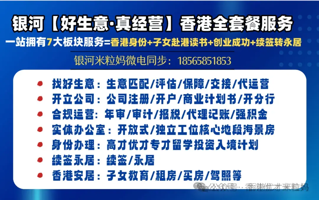 银河集团不只是您的香港服务提供商,更是您的商业实质合伙人!我们帮您的公司跳出 “空壳法律实体”,打造有真实业务、有经济活力的合规主体,轻松成为香港在册纳税人,畅享 8.25% 利得税优惠。【银河好生意・真经营】服务全包:好生意精准匹配、实体办公室租赁、公司开立、公司合规商务全流程支持。想了解详情,直接加银河米粒妈微信:18565851853