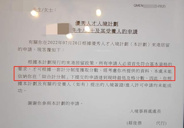 香港优才计划竟有人因评分低于80分收到【拒批函】?