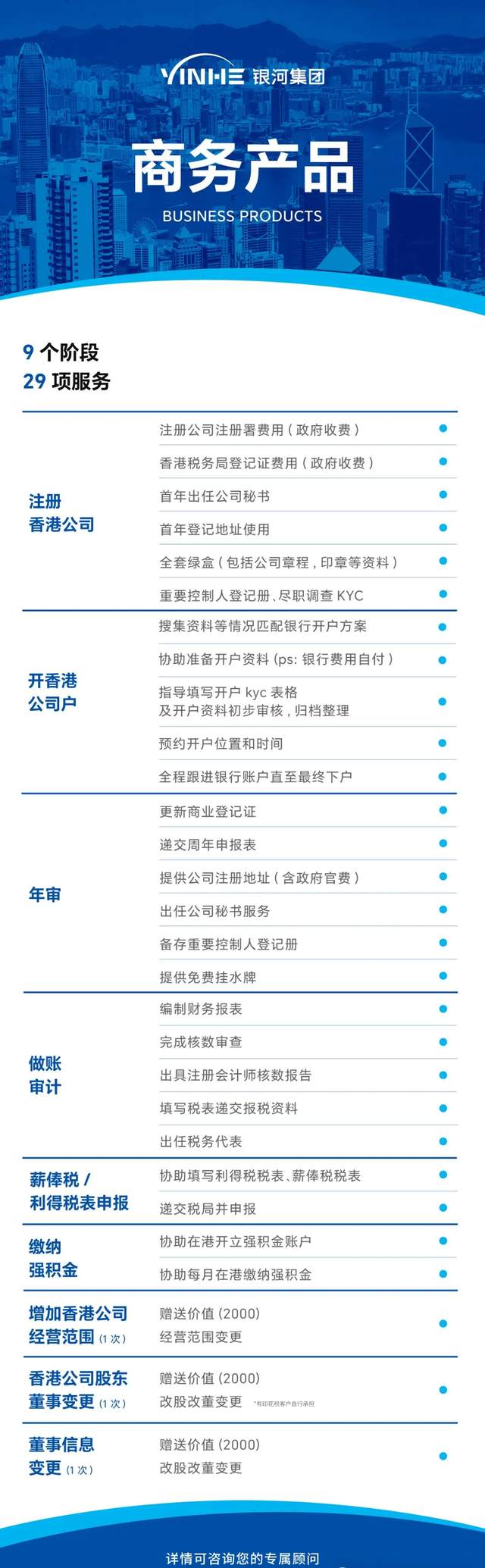 银河集团一站式服务全国第一,不仅提供香港身份(优才/高才/专才/留学/投资入境计划)服务,还提供香港身份续签、永居服务等后续服务;香港择校评估、择校、插班服务等香港子女教育服务;香港公司注册、银河开户、公司强积金缴纳、香港公司年审/审计、香港公司信息变更服务。