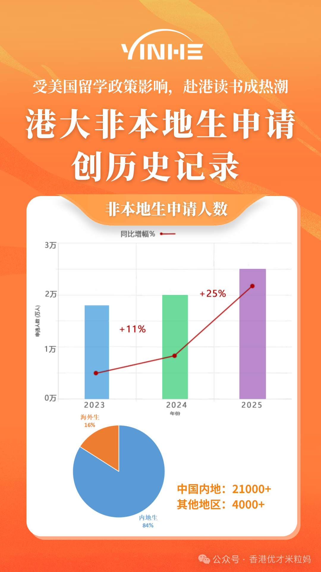 香港留学以其低门槛、性价比高、学期短等优势,成为内地人办理香港身份的香饽饽。 再加上受美国留学政策影响,2025年赴港读书成热潮,港大非本地生申请创历史记录。