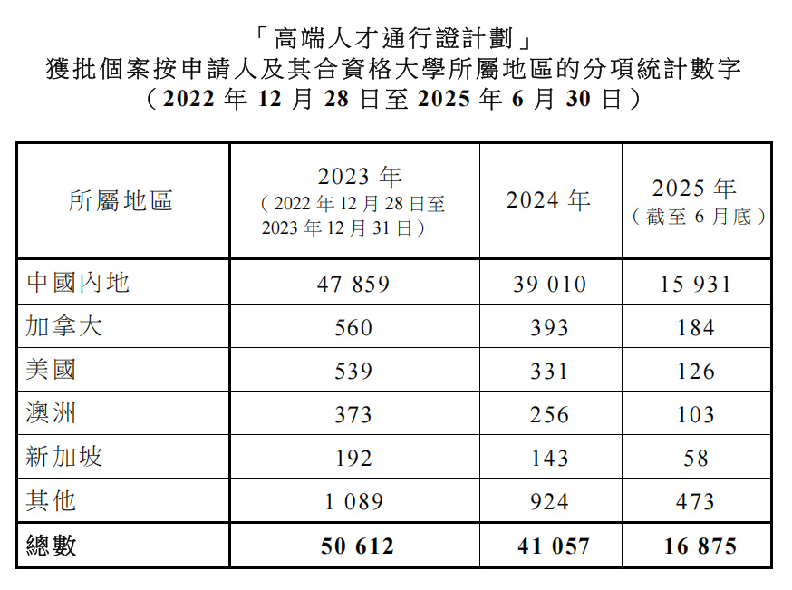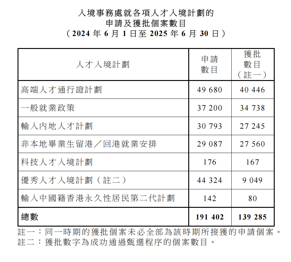 今年以来,2025年上半年(1-6月),香港高才通计划新接收申请49,680宗,新获批申请40,446宗,整体获批率高达81.4%。