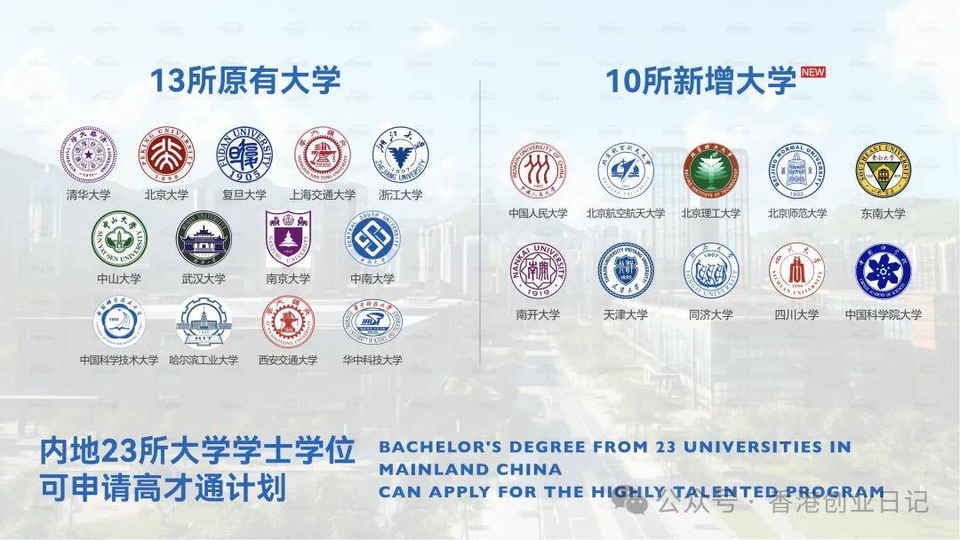 新版!23所内地大学落户香港名单更新(含香港优才和高才通合资格大学、落户政策)