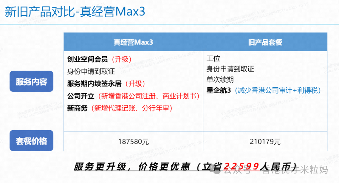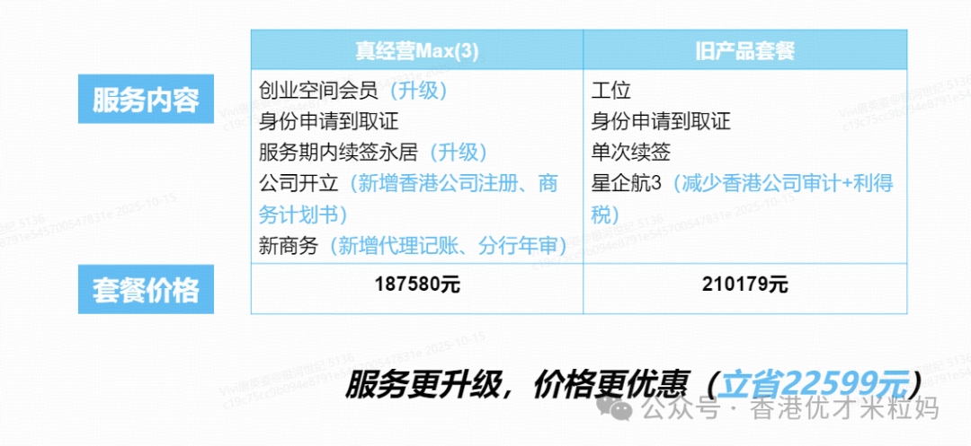 旧产品采用“7年服务一次性买断”模式,客户需在签约时支付全部费用(通常涵盖7年身份续签、基础商务服务等)。这种模式对创业者的现金流要求极高——尤其是初创者或中小投资者,可能需要一次性筹集数十万港币,不仅增加了短期资金周转压力,还可能因一次性投入过大而影响业务启动节奏。