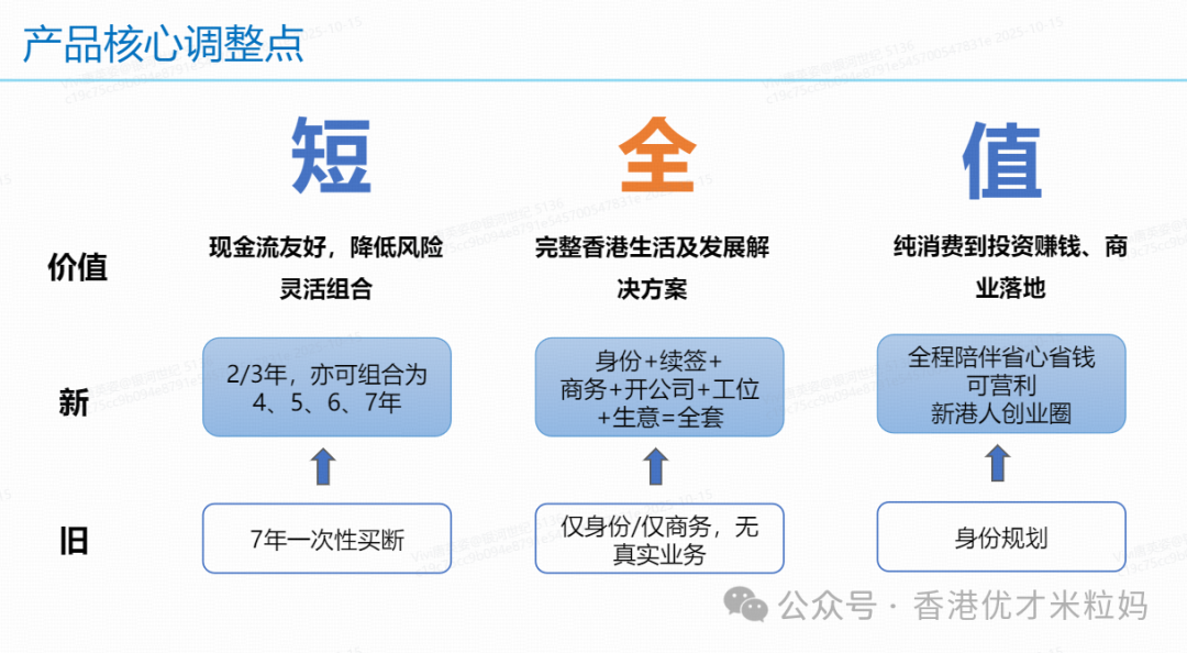 旧产品通常是“标准化套餐”,客户只能选择“仅身份服务”“仅商务服务”等单一模块,或固定年限的捆绑服务。例如,若客户仅需身份续签但暂无业务需求,只能购买包含多余服务的套餐;若想延长服务周期,只能按固定7年买断,无法根据实际业务发展动态调整。这种“一刀切”的模式,导致许多客户为不需要的服务付费,或因服务期限不匹配而被迫重复购买。