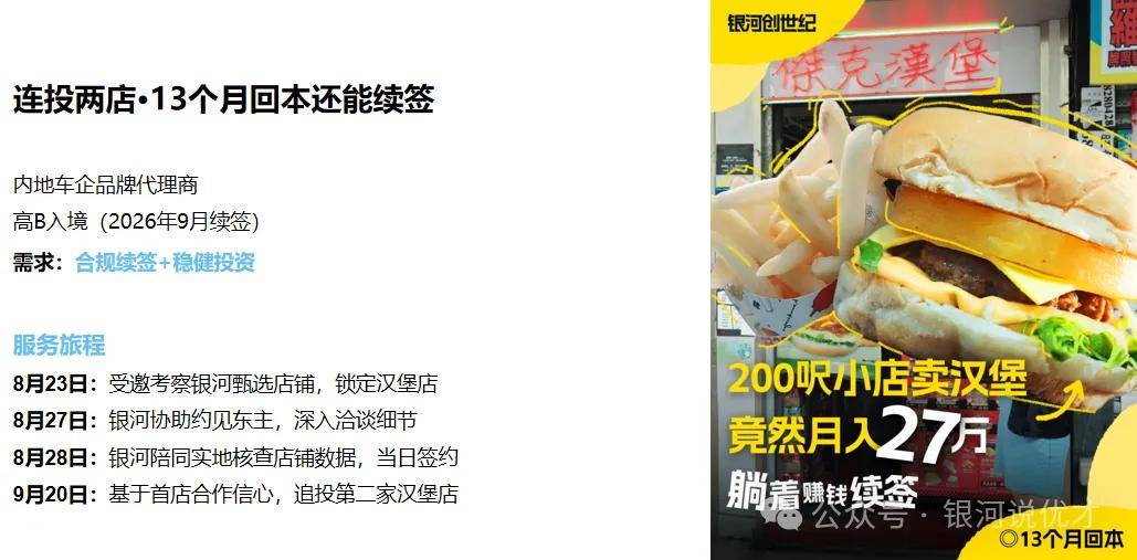 如果你想找专业中介规划创业续签,不妨考虑银河集团,可以提供一站式解决方案,一对一咨询(17319271820)