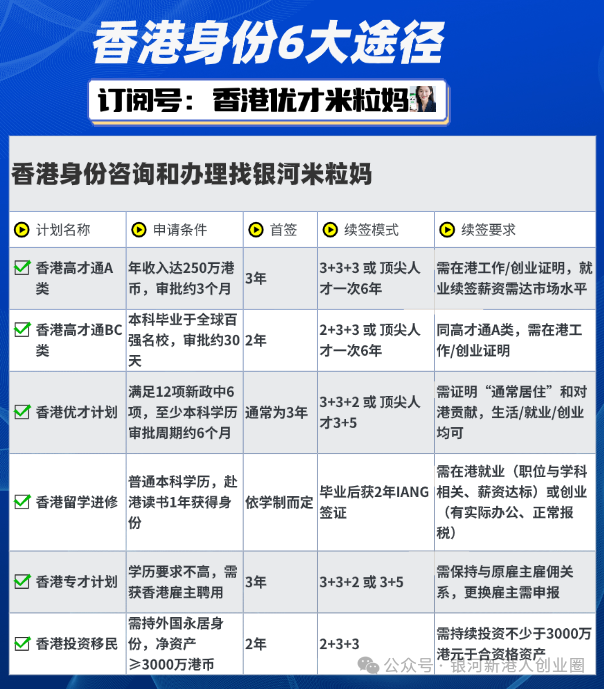 关键提醒:无论选哪条路,都要提前规划续签(比如高才通需在港就业/创业留痕,优才需证明与香港的持续关联),否则7年永居可能“断签功亏一篑”!