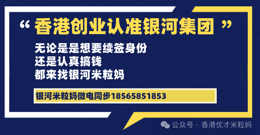 香港身份申请、续签、创业续签、转永居、香港中小学插班都可以DD银河米粒妈。银河专家为您提供免费咨询+定制香港身份申请和续签专属方案。银河集团专注香港18年,中国香港身份机构TOP1,获批案例30000+,实力和口碑并存!把香港身份交给银河=高获批+一站式服务+续签0拒批=放心+躺赚。银河米粒妈微电同步(18565851853),米粒妈公众号【香港优才米粒妈]