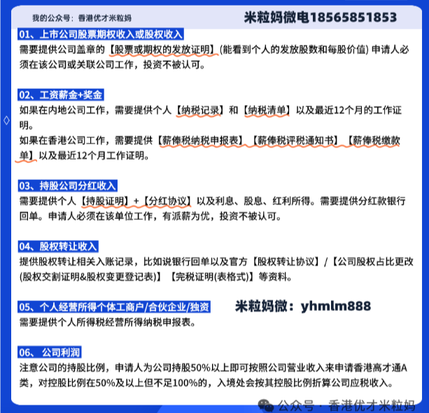 高才通A类是港府针对企业主开通的一项政策,年收入达到250万港币就能申请,不过这里面有很多隐藏规则,申请前需要谨慎评估。 2025年香港入境处对高才通A类年收入标准重新定义, 门槛提高,接下来为您详细拆解高才通a类申请条件。看看你是否达标高才通A类申请条件,如果对其中的细节有疑惑,可以加我的微信详细了解(18565851853)
