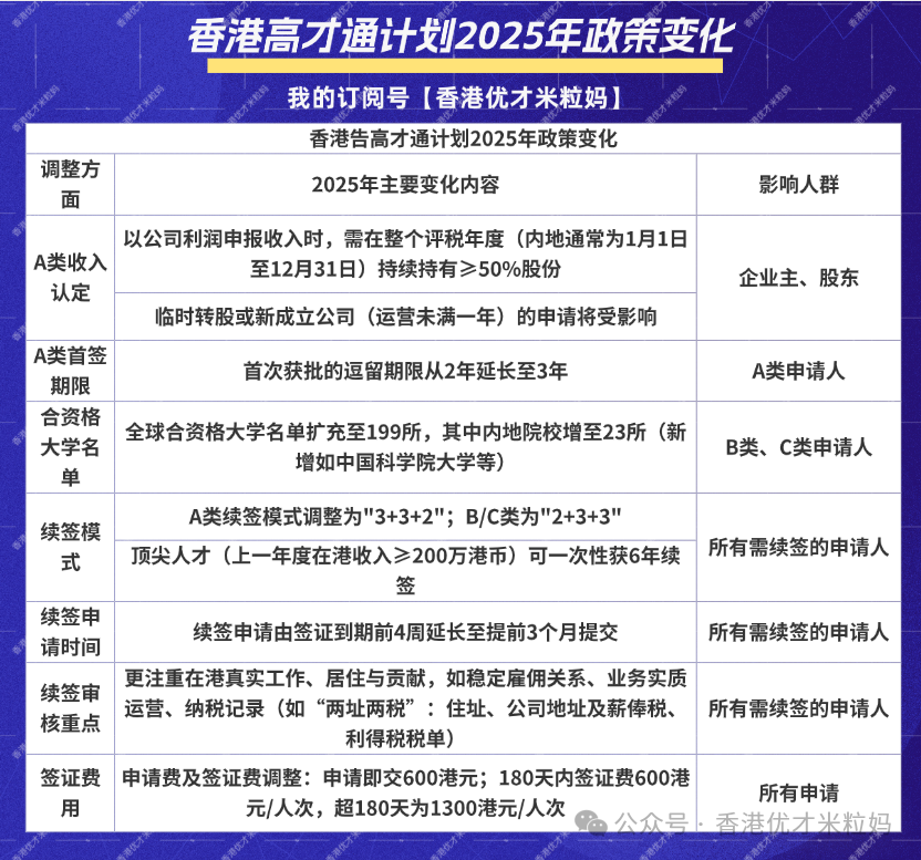 香港高才通计划2025年的政策进行了一些调整,目的是更精准地吸引和留住人才。米粒妈妈用表格汇总了主要变化,方便你快速了解: