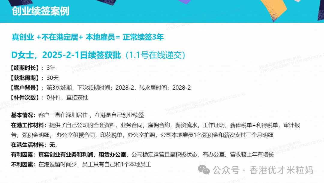 ✅ 续签阶段:获批后立即规划(受雇/自雇/创业),越早建立香港关联越稳;