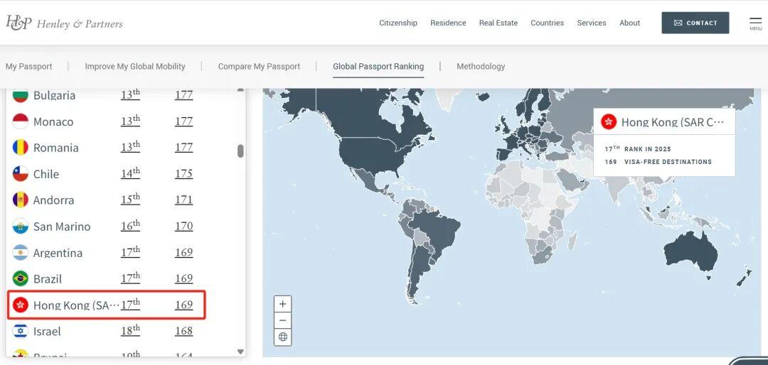 最新翻查2025年Henley Passport Index(护照指数),香港特区护照在全球护照排名中位列第17位。这波免签政策顺利计入统计,香港特区护照排名将继续向前!