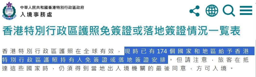 至此,已经有174个国家/地区给予香港特区护照持有人免签或落地签证待遇。