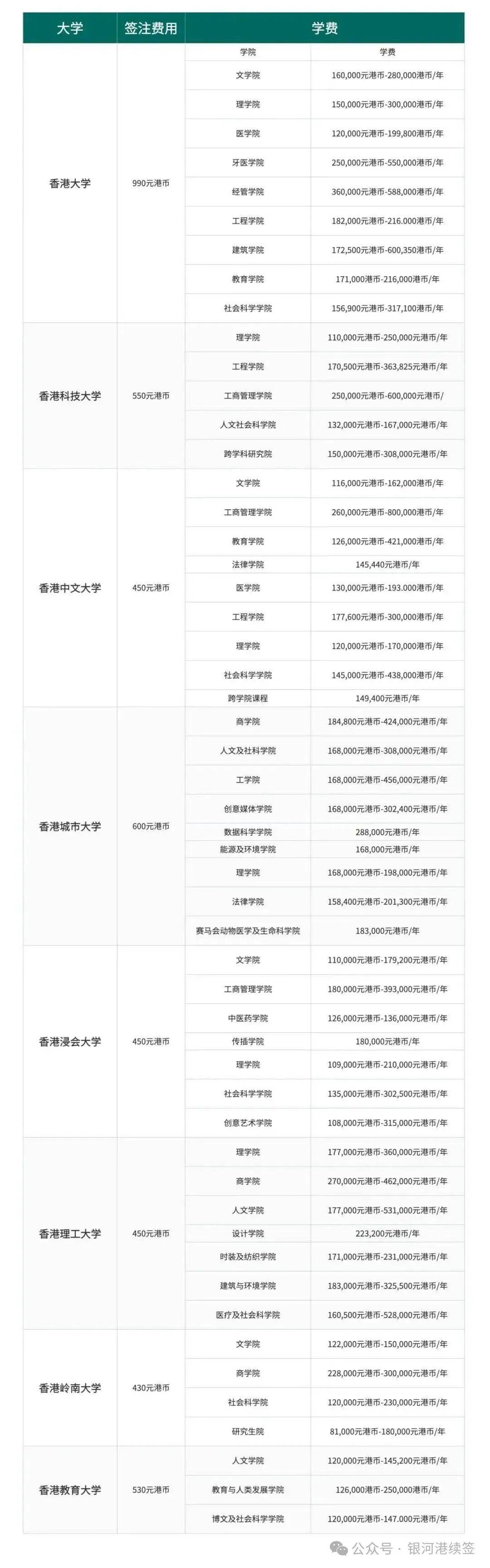 所以我们以港三 25Fall各个学院最低到最高学费区间做个盘点!
