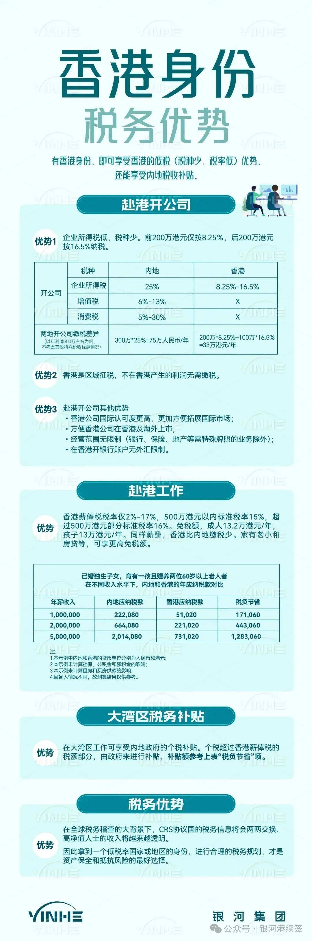 举个例子:如果年薪100万,按内地45%税率要交26.8万的税,补贴后只按15%算,实际只要交15万,一年能省11.8万。花几万块办个香港身份,每年就能多拿十万块,相当于变相涨工资,怎么算都划算。
