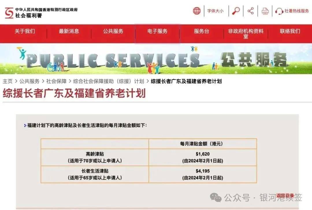 2024年2月起每月金额为4195港币。申请需满足年满65岁、在港居住满7年且申请前连续居港一年(离港不超过90天),同时收入和资产需符合规定限额。