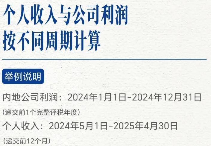 ④业务收入申请时间的要求:公司利润收入必须在一个完整的评税年度内,如在2025年6月30日后申请,需满足2024年1月至12月的评税年度。若公司在2024年3月成立,未满一年评税期,即便2024.5-2025.4的利润达250万港元,也无法申请。