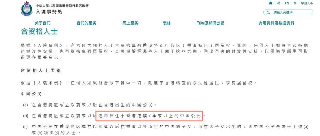 则需满足“连续居住在香港7年”的要求,具体条件包括: