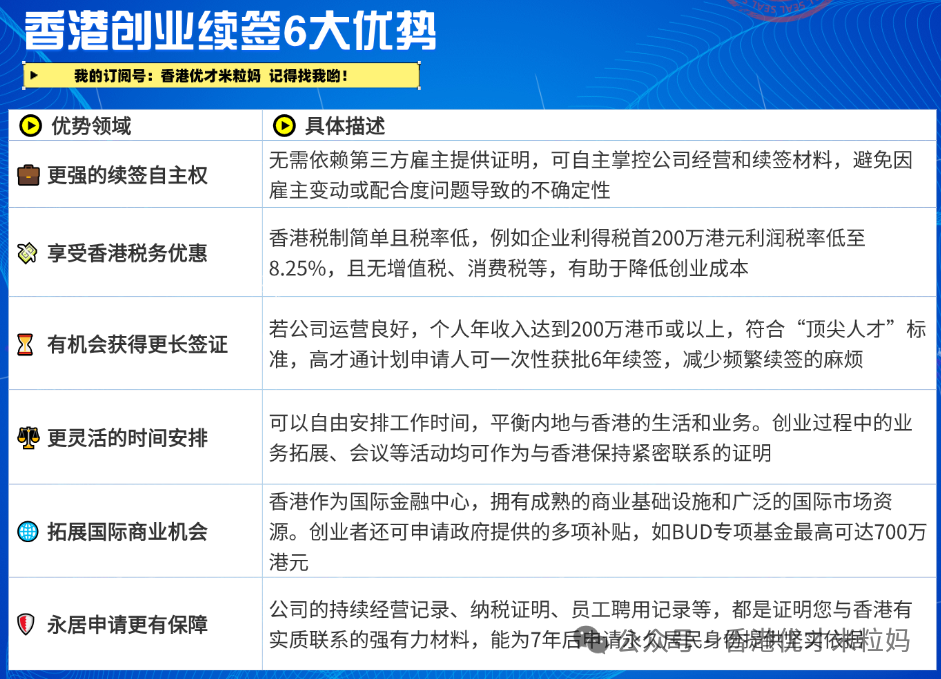 ③对港经济贡献:体现依法纳税、创造本地就业(雇佣本地员工并依法缴纳强积金MPF)等,有助于获得更长逗留期。