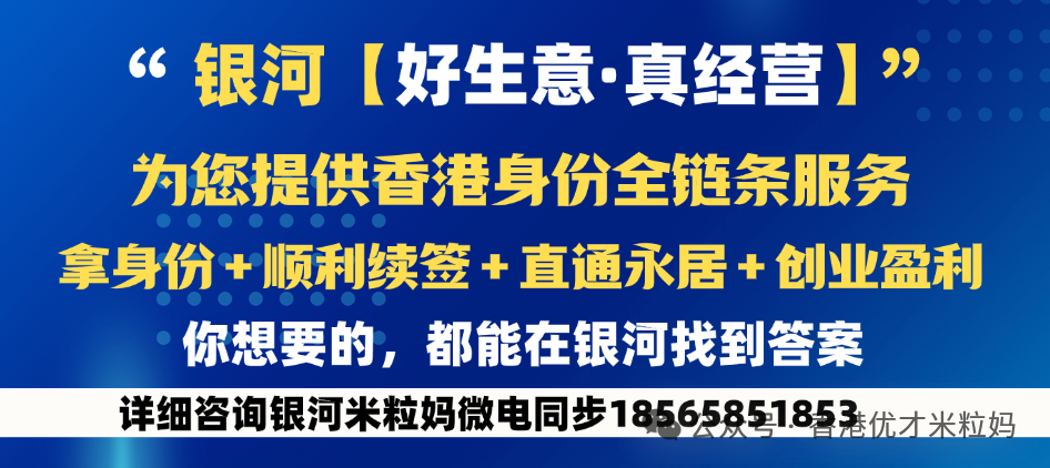 如果你想要办理香港优才计划直接找银河米粒妈:18565851853 &17675416895。 银河【好生意·真经营】为您提供优才计划办理、激活拿身份、续签、创业续签、永居全链条服务。