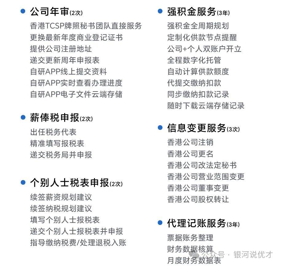银河集团提供多种创业续签服务套餐,不管你在香港是否有公司、是否有业务,都可以跟银河君(17319271820)了解服务详情: