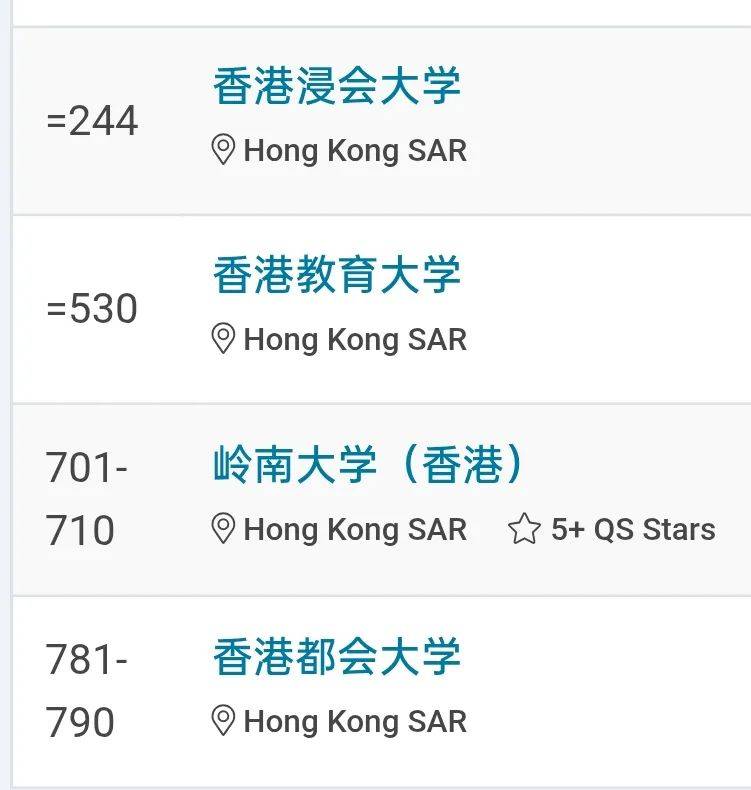 第三梯队(约等于内地的211大学):香港浸会大学、岭南大学、香港教育大学、香港演艺学院;