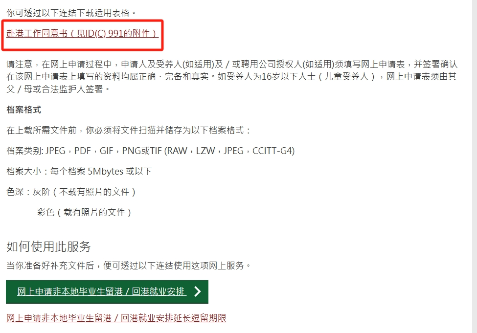 具体操作方面,登录相关网站后,只需将页面一直向下滑动,就能看到赴港工作同意书。