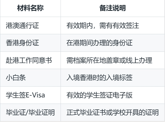 带上港澳通行证、学生逗留签证、逗留签、小白条赴港激活学生签证并办理香港居民身份证,配偶和子女可以申请一同赴港,孩子可以入读本地学校,配偶不能在当地工作,不过要添加受养人的话需要提供住址(即需要租房)。