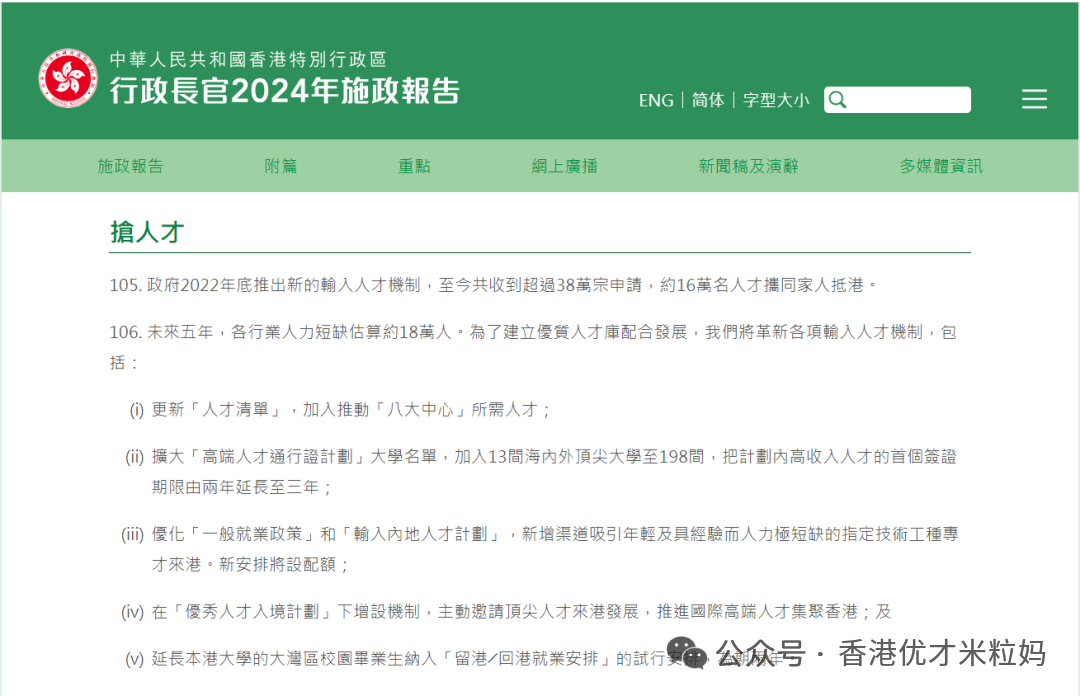 2024年10月《施政报告》发布后香港人才引进一系列的调整幅度很大,港府“抢人才”政策的全面升级,可以说目标只有一个:吸引更多全球顶尖人才来港!