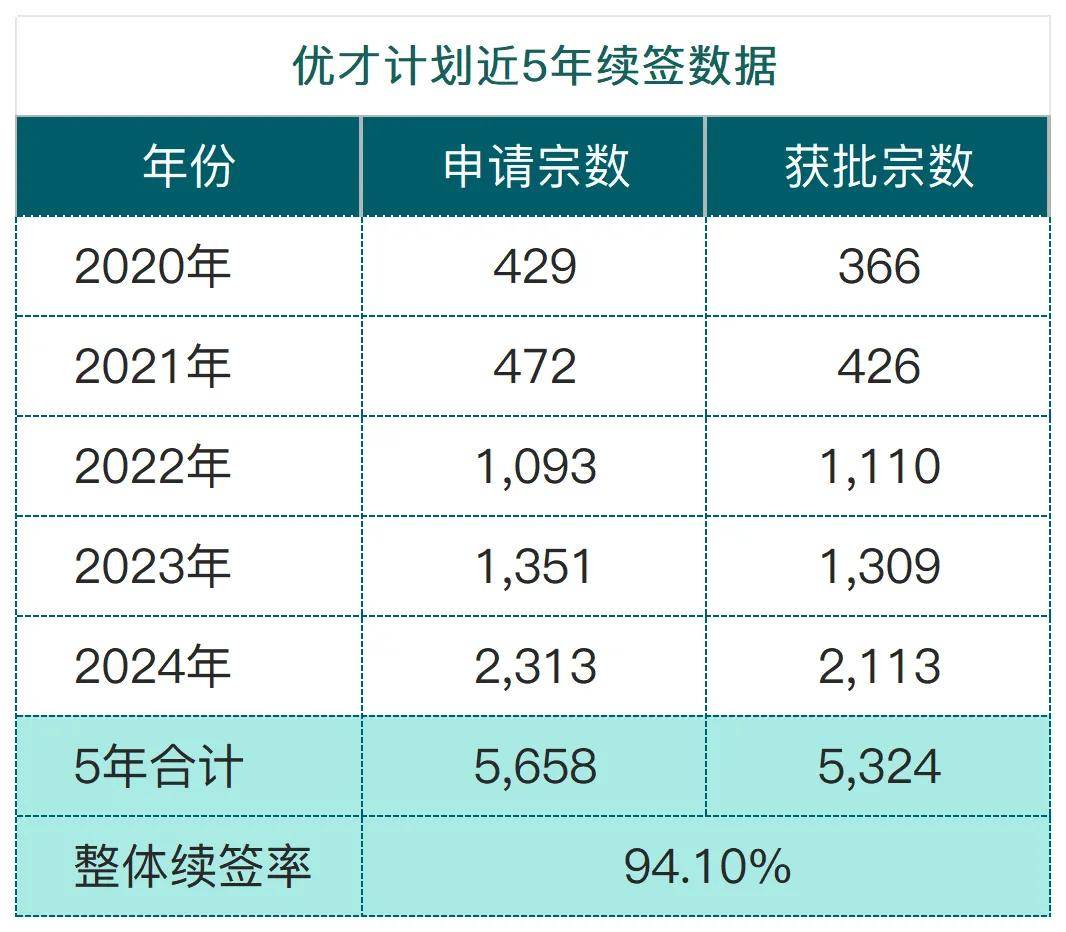 通过梳理香港入境处公布的数据可以发现,优才计划近5年的整体续签通过率高达 94%,续签难度相对较小。