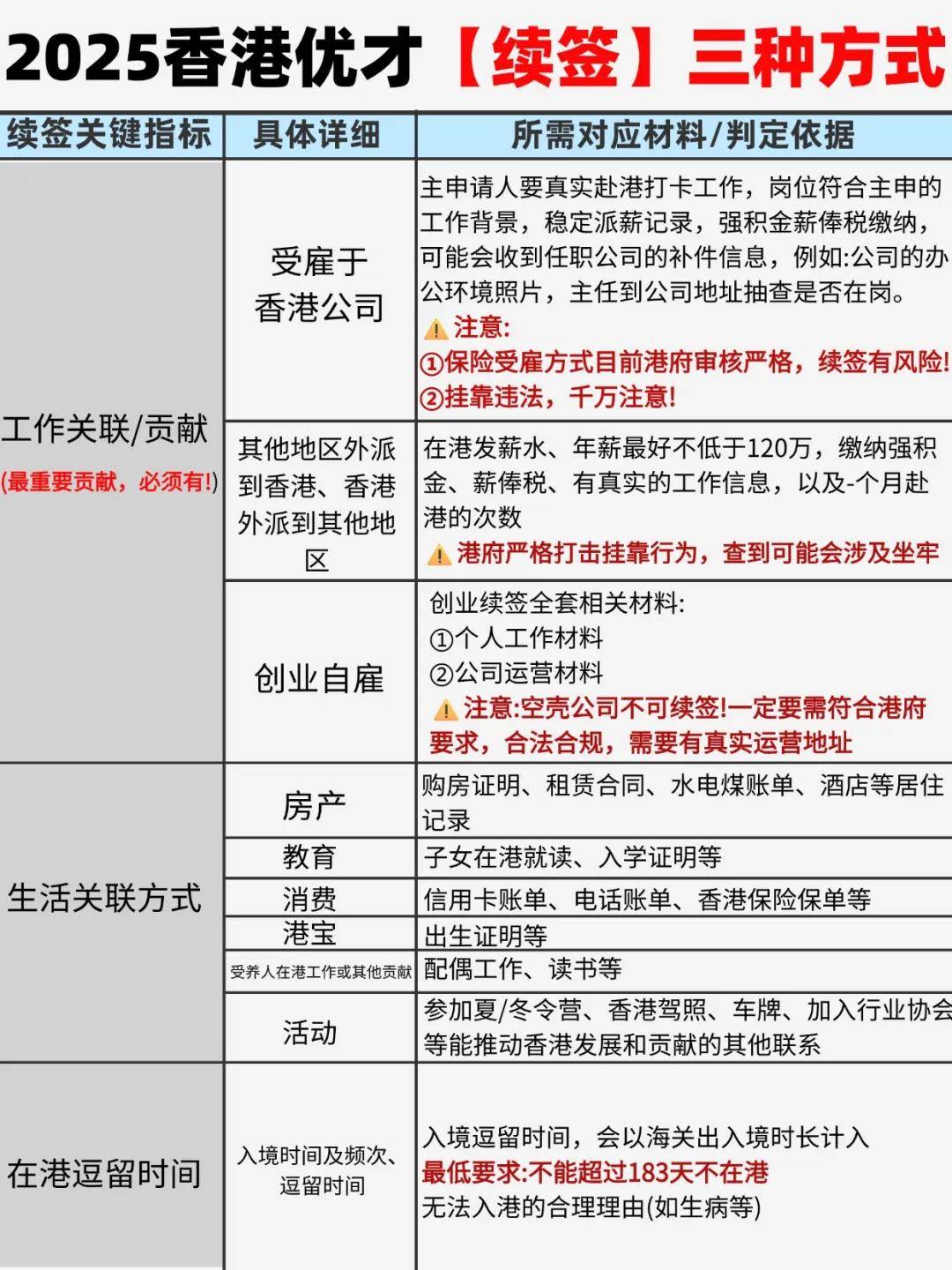 已经获得优才签证的朋友来说,做好续签准备至关重要。2025年优才计划政策变革后,续签要求开始收紧,以往的续签政策已不再适用。获批后长期不在港,也没有为香港产生经济贡献,续签很可能会被拒!