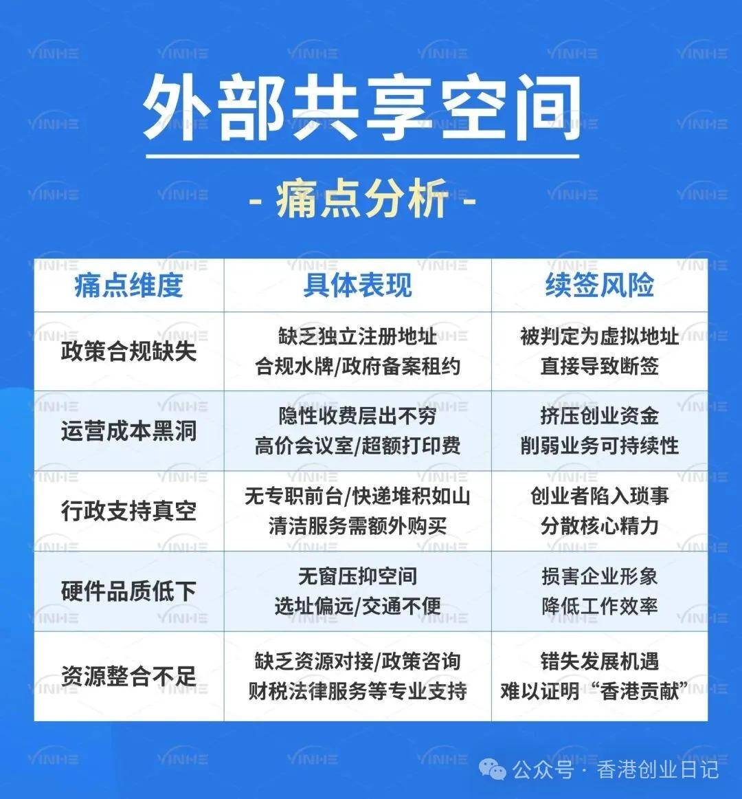 此外,香港政府对商业运营场地有严格规定,例如需提供独立租约、正规厘印文件及公司水牌等,若企业为节省成本选择工业大厦或非合规共享空间,可能因场地资质问题导致续签失败或法律风险。这种“高成本+严合规”的双重压力,使许多创业者陷入两难境地。