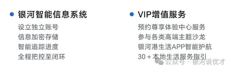 包括银河智能信息系统、VIP增值服务等。