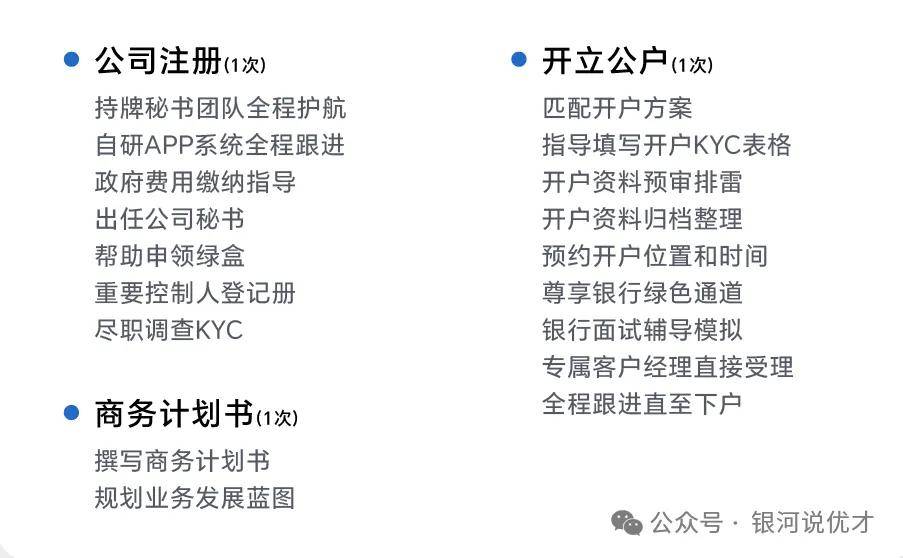 提供公司注册、开立公司账户、商务计划书撰写等服务。