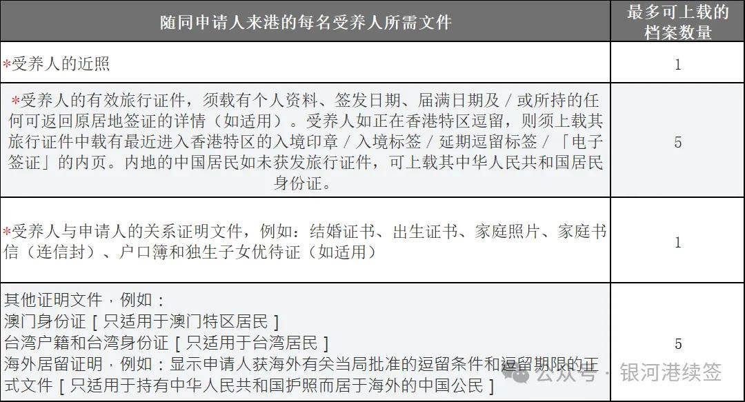 其他材料:如有随同受养人,需准备受养人文件材料;可能还需赴港同意书等。