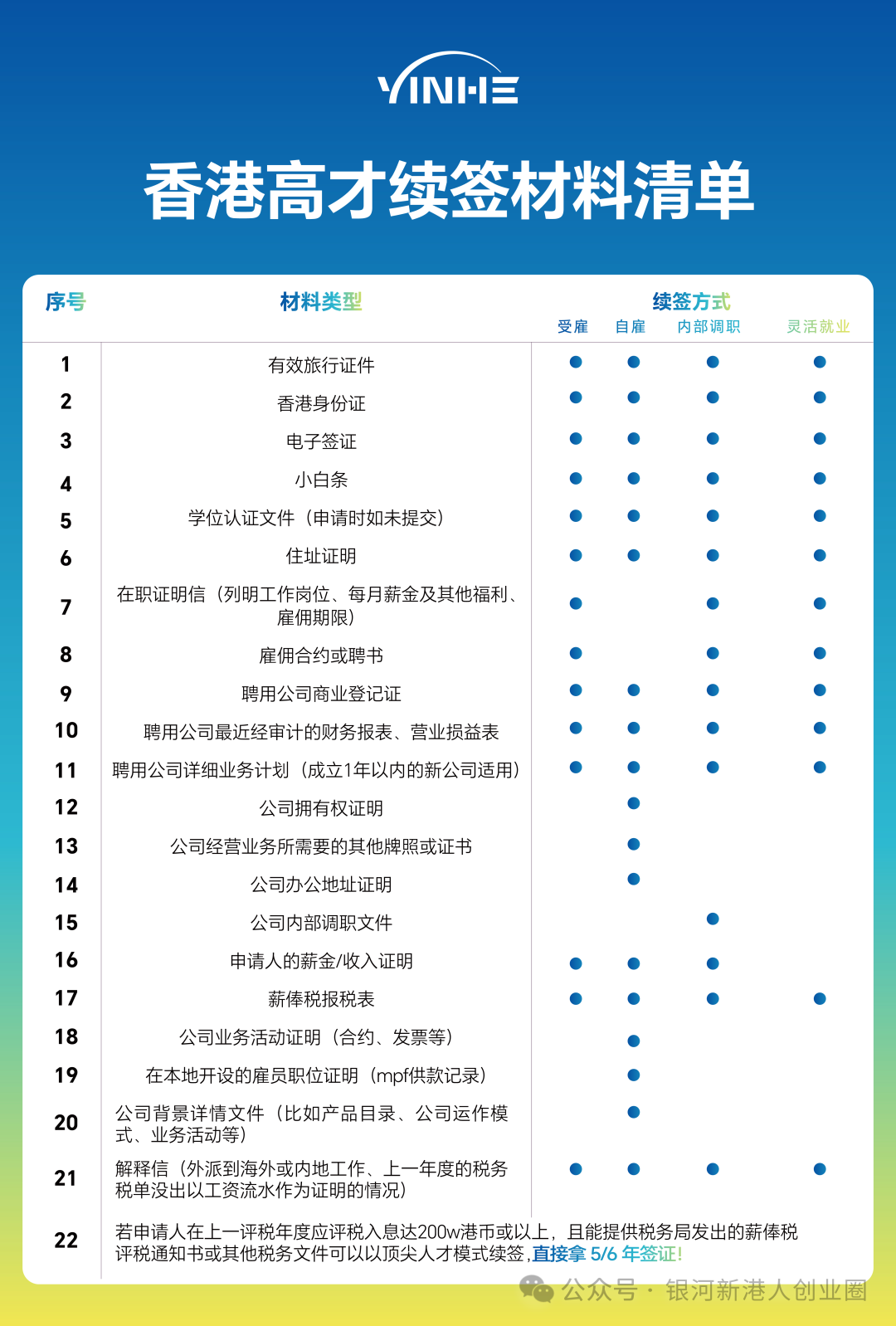 关键提醒:顶尖人才(在港满 2 年且上年度薪俸税入息≥200 万港元)可申 “2+6” 模式,银河可协助梳理税单与收入证明,加速续签流程。
