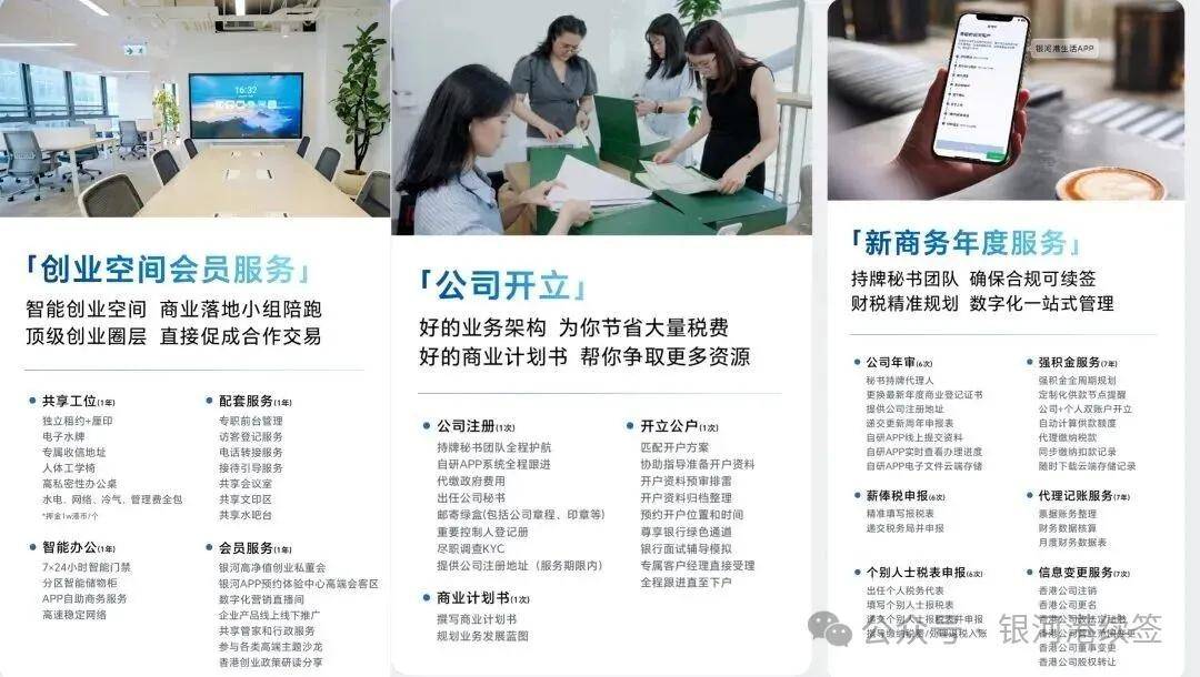 区别于传统办公,银河真经营,致力于提供“一站式”创业服务。主要为了有效解决香港创业成本高、找不到用户、没有本地资源、启动艰难等问题。具体服务包括服务共享、办公共享、团队搭建、公司运营等服务内容。