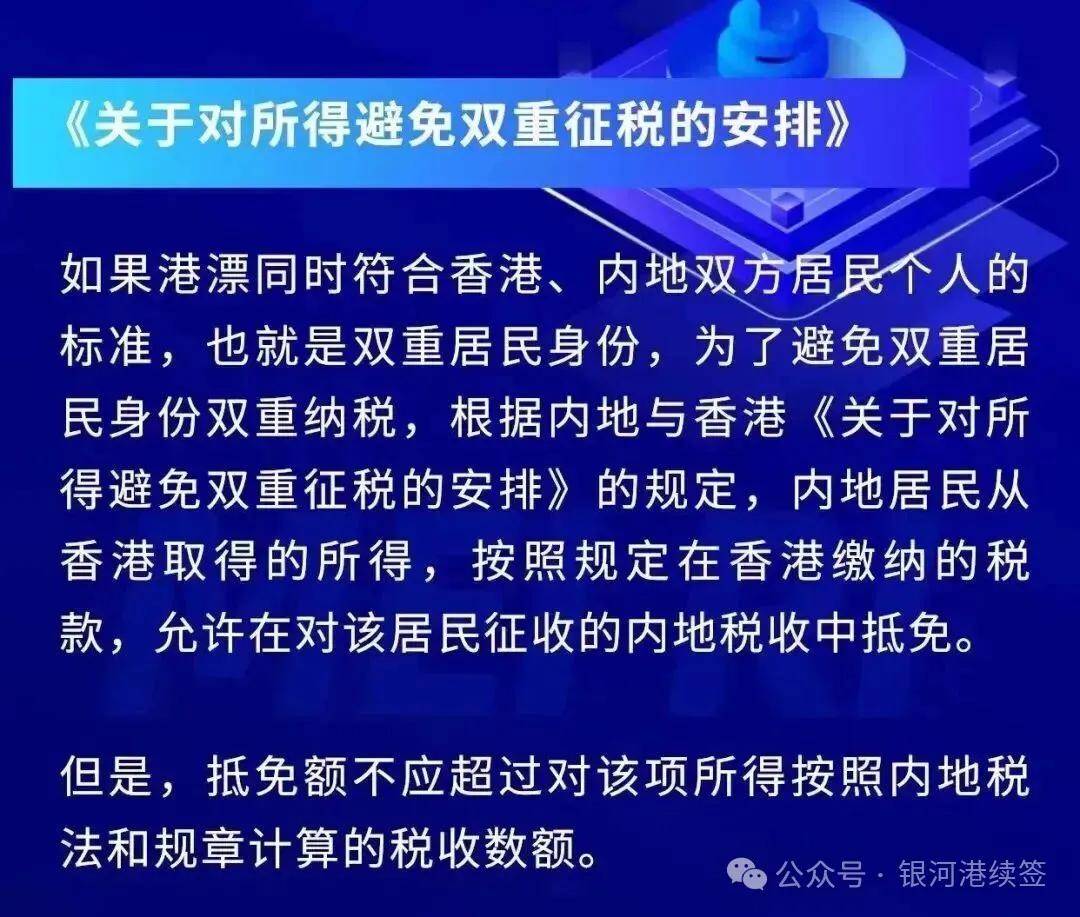 根据内地与香港之间关于所得税的双重征税避免安排,内地居民在香港赚取的收入需在香港缴纳税款,而这些已缴税款可在内地的税务中获得抵扣。