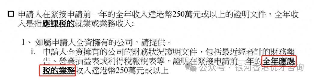 ①创业人士是独资企业主:需要公司的营业收入达到250万港币或以上,即符合申请资格。