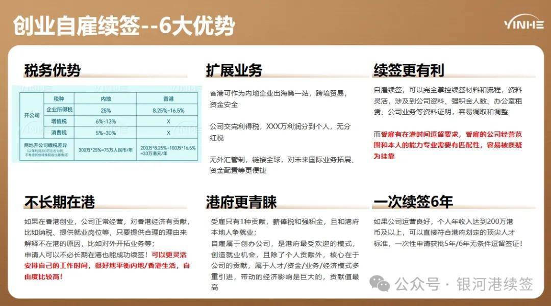 1、有助于香港身份申请和续签,而且能更多建立与香港更多的工作关联,创业(自雇)助力香港身份续期&永居,用实际的业务往来证明自己有在香港创办业务。