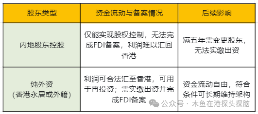 香港公司控股内地公司时,股东身份直接影响资金的进出和投资可行性,主要包括两类情况: