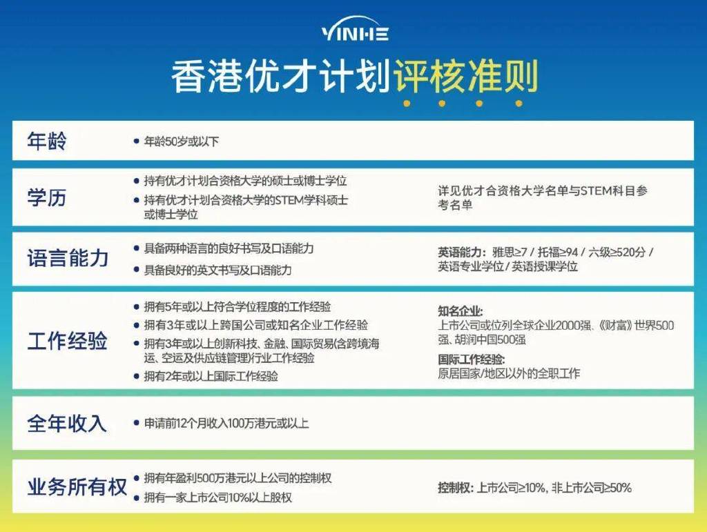 香港优才计划采用综合计分制(12项选6):评估学历、工作经验、语言能力等12项指标,或通过成就计分制(行业杰出人才直接获批)。