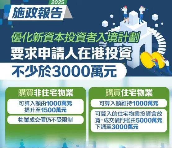 2024年重启的投资移民政策,旨在吸引高净值人群通过资本投入支持香港经济发展,2025年进一步明确投资方向(如科创领域)。