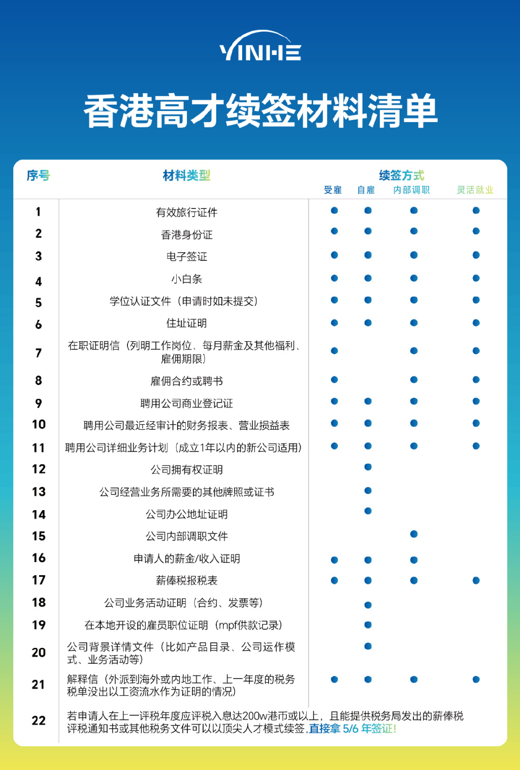 ②续签模式:首次获批通常为3年,续签模式为“3+3+2”,核心要求是维持与香港雇主的合法雇佣关系,且薪资符合市场水平(需提供雇佣合同、工资流水、强积金记录等)。