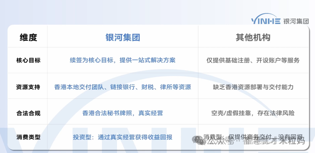 市面上不少机构仅提供商务服务或单一续签服务,银河集团的香港续签一站式解决方案与之差异显著,优势突出。