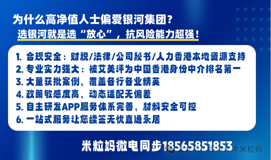 香港身份申请(优才、高才、专才、留学、投资移民)、续签、创业续签、永居都可以找银河米粒妈,我的咨询微信(18565851853)。