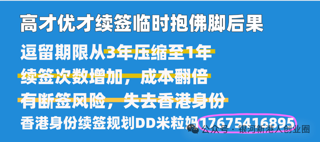 香港优才计划不是第一步到位拿永居,提前规划续签至关重要!如果你想要了解自己续签的成功率有多大,可以点击链接做一个测评,我们会有专业老师为您提供续签规划咨询↓↓↓ 香港身份续签申请、规划都可以加我微信 (17675416895)