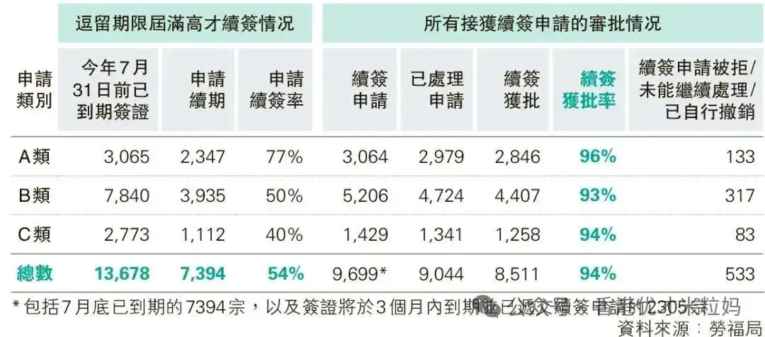 ——香港劳福局最新公布:截止到2025年7月31日,有13,678名高才逗留期满,7,394人申请续签(54%),续签获批率高达94%!孙玉菡局长表示:续签情况理想,符合预期。
